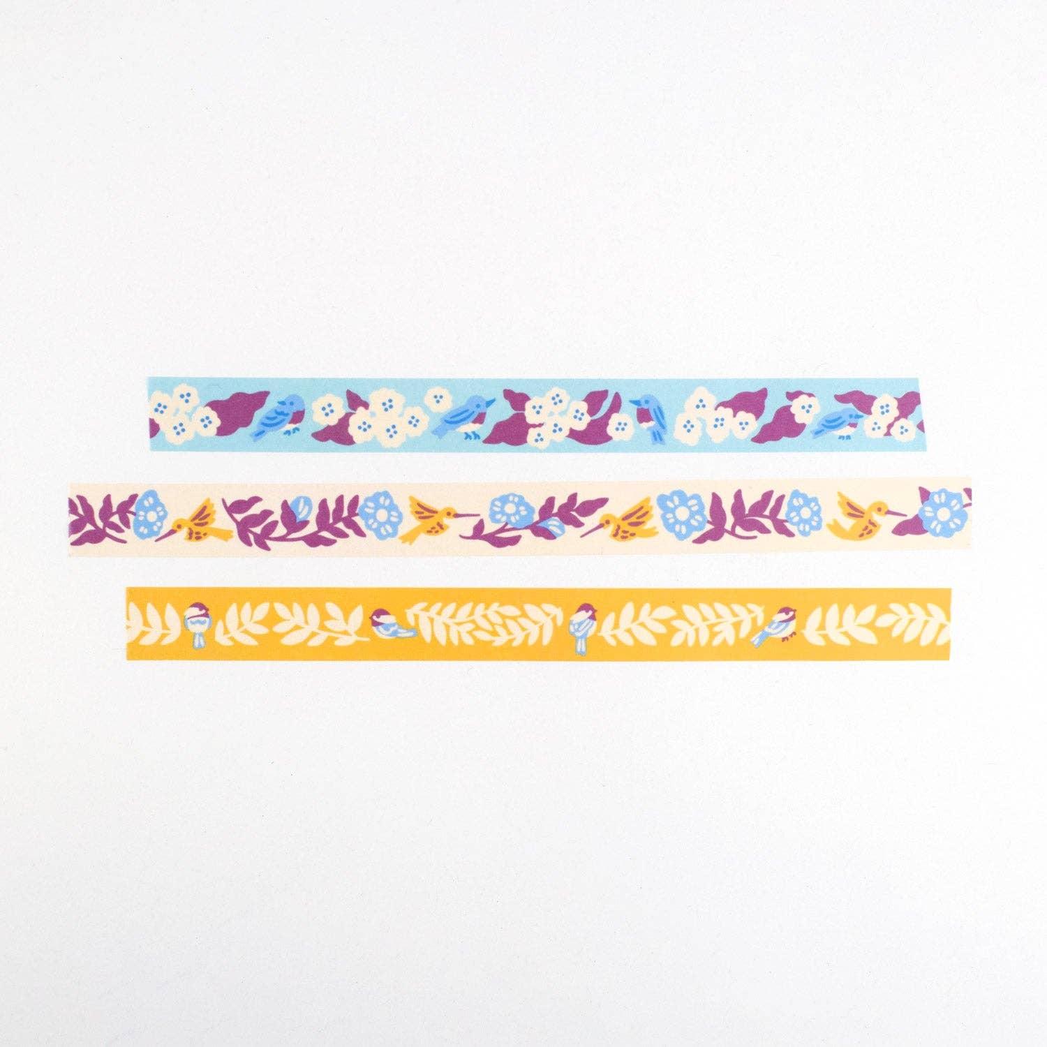 Brighten up your journal, personalize an envelope, or organize a notebook with this Birds & Blooms Washi Tape Set featuring bluebirds, hummingbirds, and chickadees. This set of 3 colorful tapes made from natural rice paper with soy inks is perfect for scrapbooking, bullet journaling, gift wrapping, and adding a personal touch to everyday items. • Set of 3 rolls • Each roll measures 15mm x 10m (0.6-inch x 33-feet) • Made from rice paper with a non-toxic adhesive • Tape is curbside recyclable and home compostable • Paper packaging is minimal and plastic-free • Artwork copyrighted © by Chrissie Van Hoever