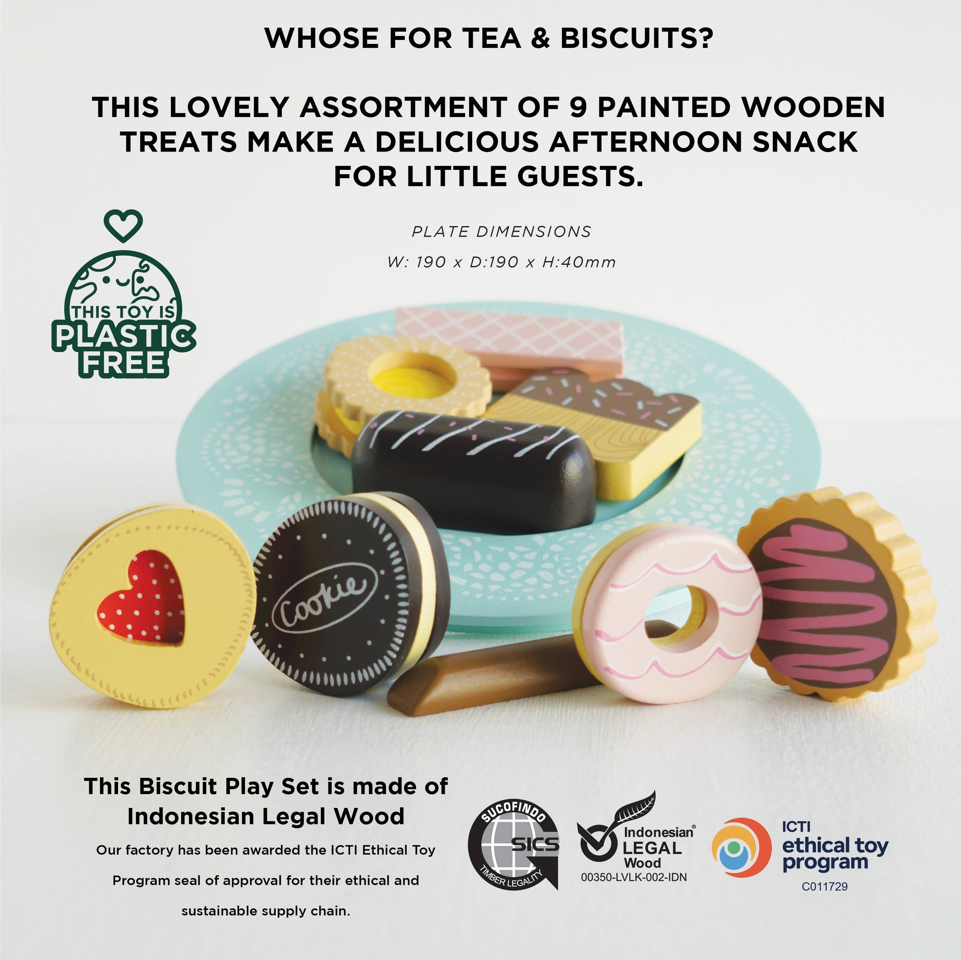 This lovely assortment of 9 'home-baked' painted wooden treats makes a delicious afternoon snack for little guests. Decorated in pretty pastel color-ways and presented on a pretty patterned plate, this sweet set is sure to inspire tea-party fun! Great for inspiring creative and imaginative play.