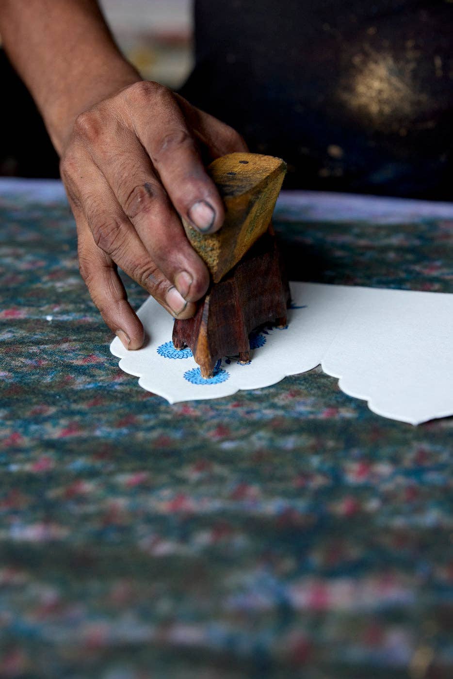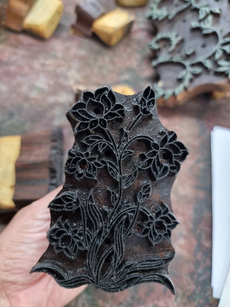 Each set features 6 beautiful, die-cut notecards and envelopes, handcrafted by artisans in India, using traditional techniques of wood block printing and hand marbling. The notecards and envelopes are held together with a cotton paper belly band and are neatly presented in a keepsake box with a matching hand block printed lid. All the notecards, envelopes and boxes are handmade.