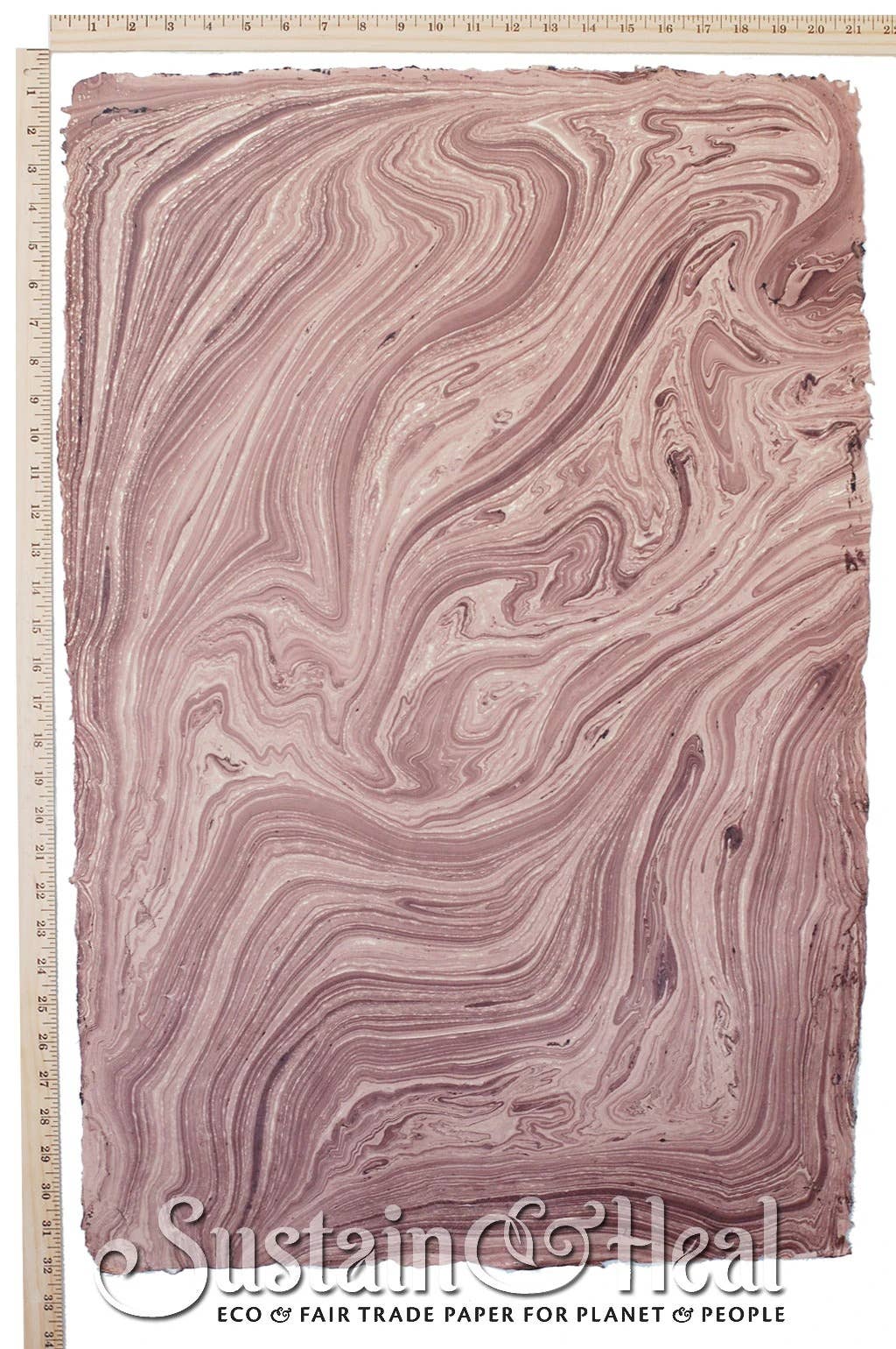Pink base sheet creates a "Rose Gold" effect. Charcoal and maroon with gold highlights. Text weight works well for folding, wrapping, envelope liners and much more. Fair Trade handmade from very durable jute fiber in Bangladesh. The photo shown is a good guide but since each sheet is handmade there may be some variation in color/pattern. 20 x30" with natural deckle edge.