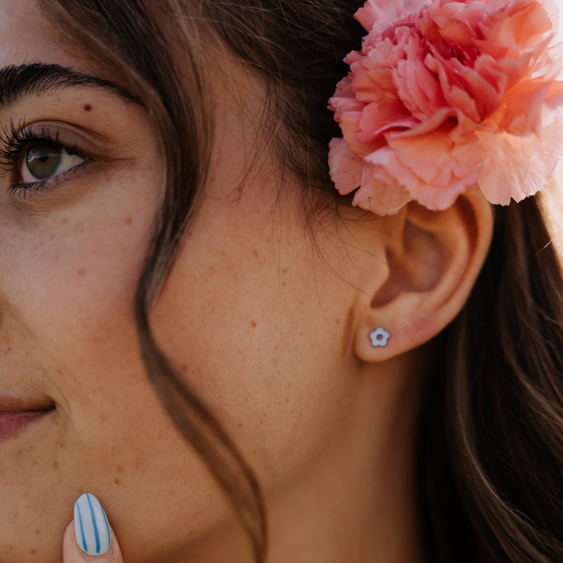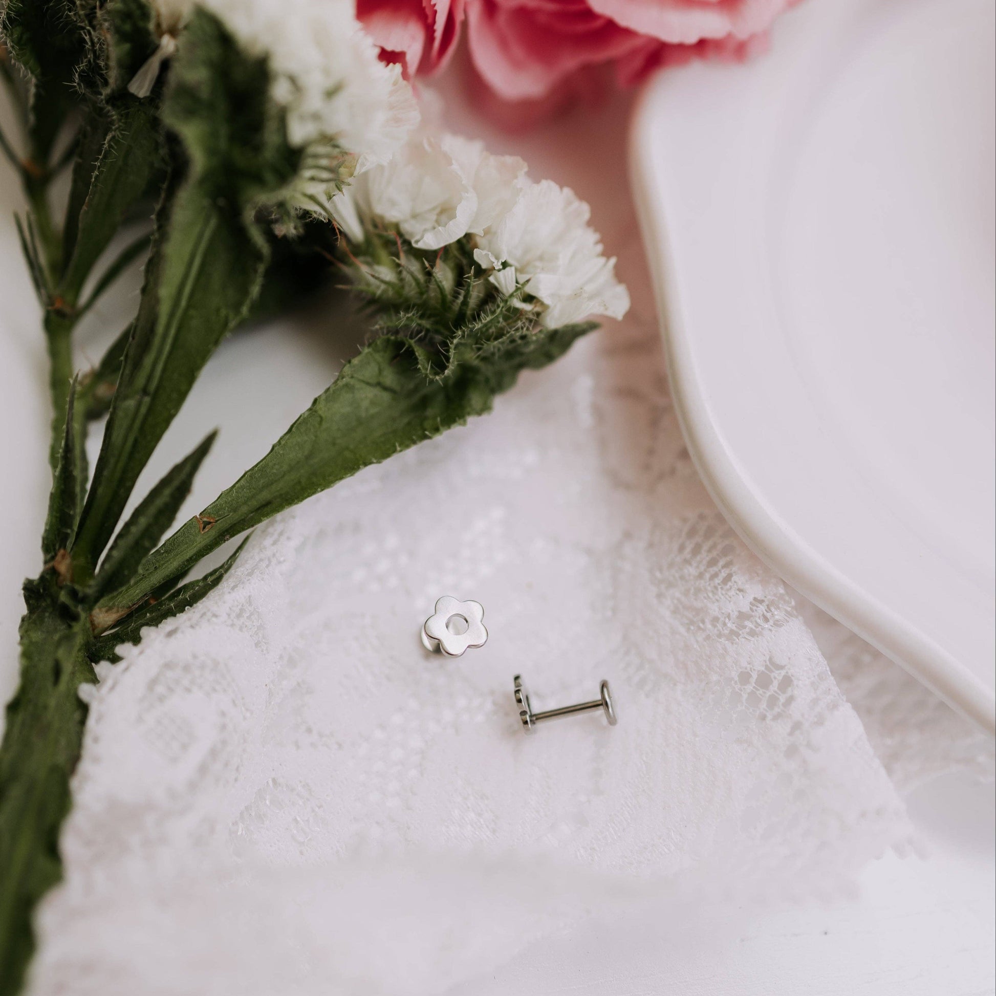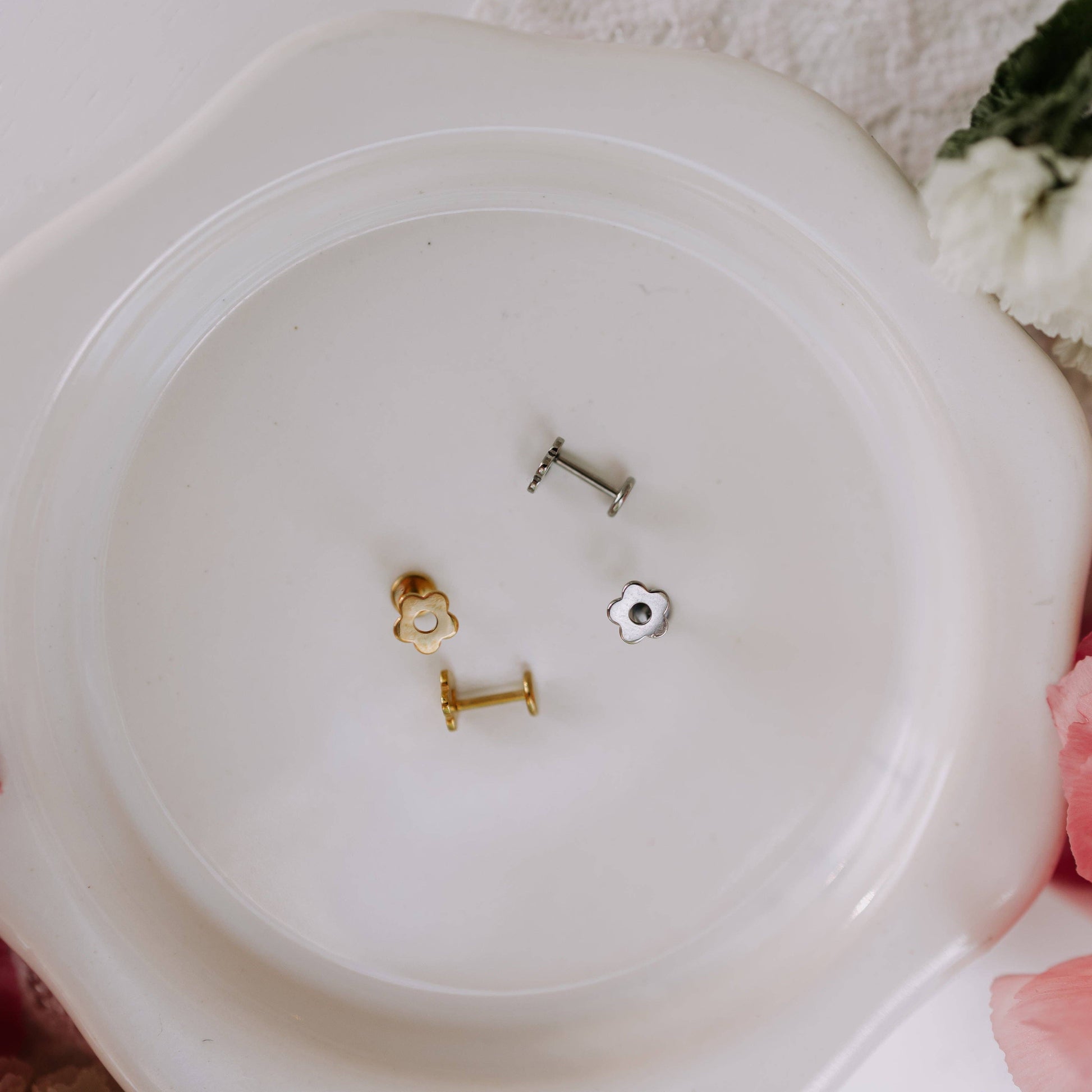 Say hello to your new favorite floral! These Flower Flat Back Studs bring a cute and feminine vibe to any outfit! - The most comfortable earrings you’ll own! They sit flush against your ear so you’ll forget you’re even wearing them! - Made of implant-grade titanium - hypoallergenic, waterproof, sweat-proof, good for 24/7 wear! 18 gauge, comes with 6mm posts. Fit snug and secure in almost all piercings! Never tried Flat Backs? Flat Back Applicators make putting in earrings a breeze!