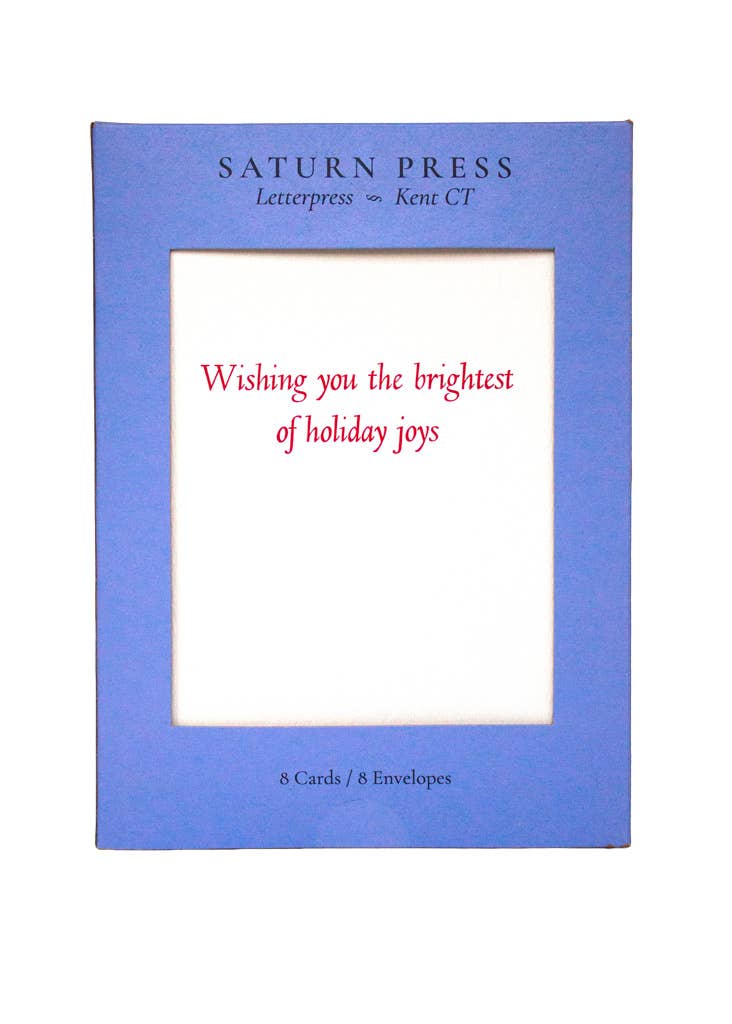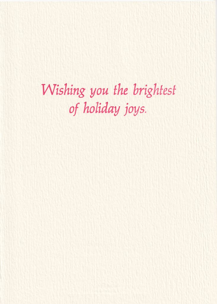 After Dora de Pedery-Hunt. The intricate pattern work and traditional red-and-green color scheme creates a Christmas card that feels both festive and sophisticated. Blue box of eight letterpress cards and matching envelopes. Letterpress printed. Deckle edged paper.