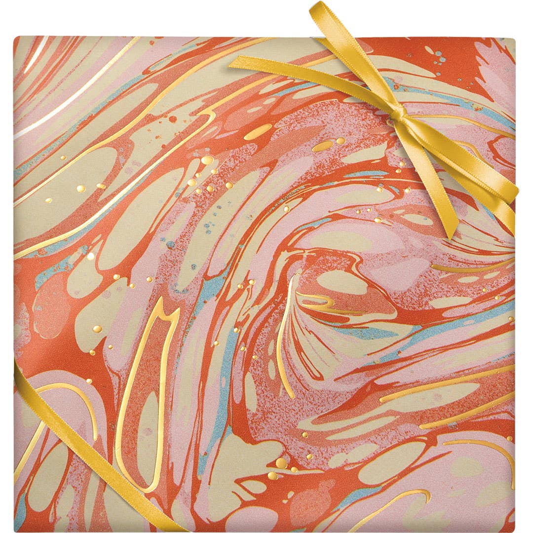 This gorgeous pink and peach marbled paper has gold foil accents and is made of stone, not trees. You read that right. Stone wrapping paper is water-resistant, reusable, and it cuts like butter! Measures 30" x 120". Grid on the back for easy cutting.