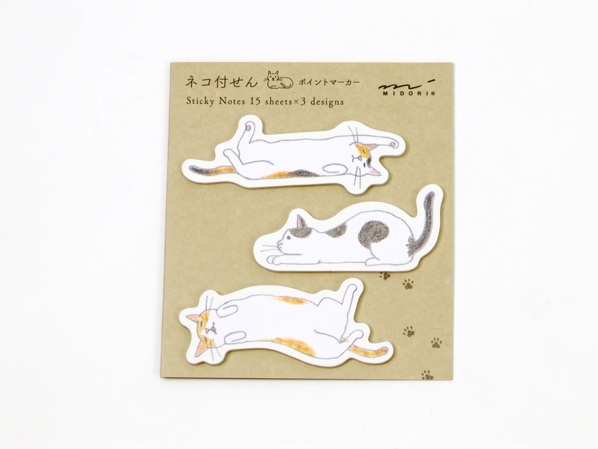Add some feline fun to your stationery collection with this Stretching Cats Sticky Notes Set from Midori (Japan). Each set includes colorful sticky notes featuring whimsical illustrations of playful cats in various stretching poses. Perfect for marking pages, keeping track of important information, and adding a touch of charm to any workspace. Featuring adorable illustrations of cats by Sayo Koizum. 45 sheets total.